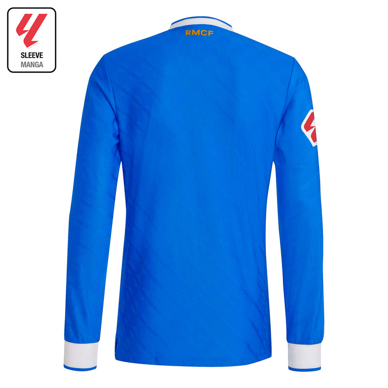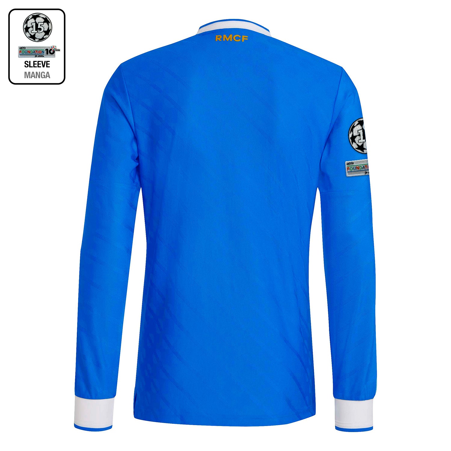 At home in blue. This Real Madrid third authentic jersey comes in a hue that's close to the hearts of Madridistas and 3-Stripes fans. A classic adidas Originals colourway and a subtle nod to the Bernabéu's identity, it's the perfect shade to celebrate the ultimate football partnership. Serrated 3-Stripes and a Trefoil add extra adidas heritage. A performance-focused build ensures you feel at home on the pitch.